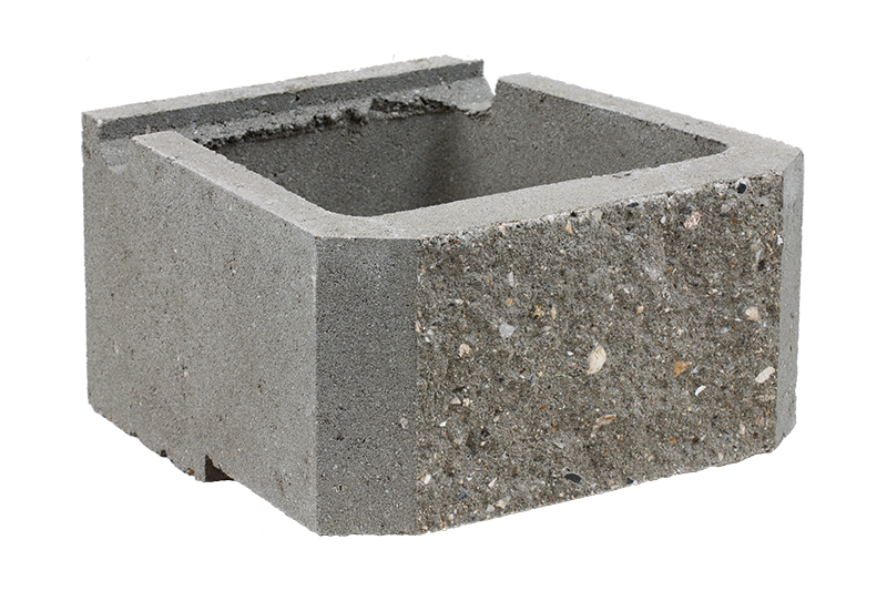 Pohledová strana prvku má štípaný povrch (připomíná hrubý kámen se znatelnou texturou kameniva) a rozměry 400x200mm – je určena pro zahradní úpravy do 1m výšky.