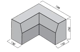 Silniční rohový obrubník vnitřní je určený k řešení rohů u silničních obrubníků napojených vodorovně pod pravým úhlem. Použitím rohového obrubníku docílíme estetičtějšího řešení ukončení kolmo na sebe navazujících obrubníků než v případě kolmého napojení dvou klasických obrubníků silničních.